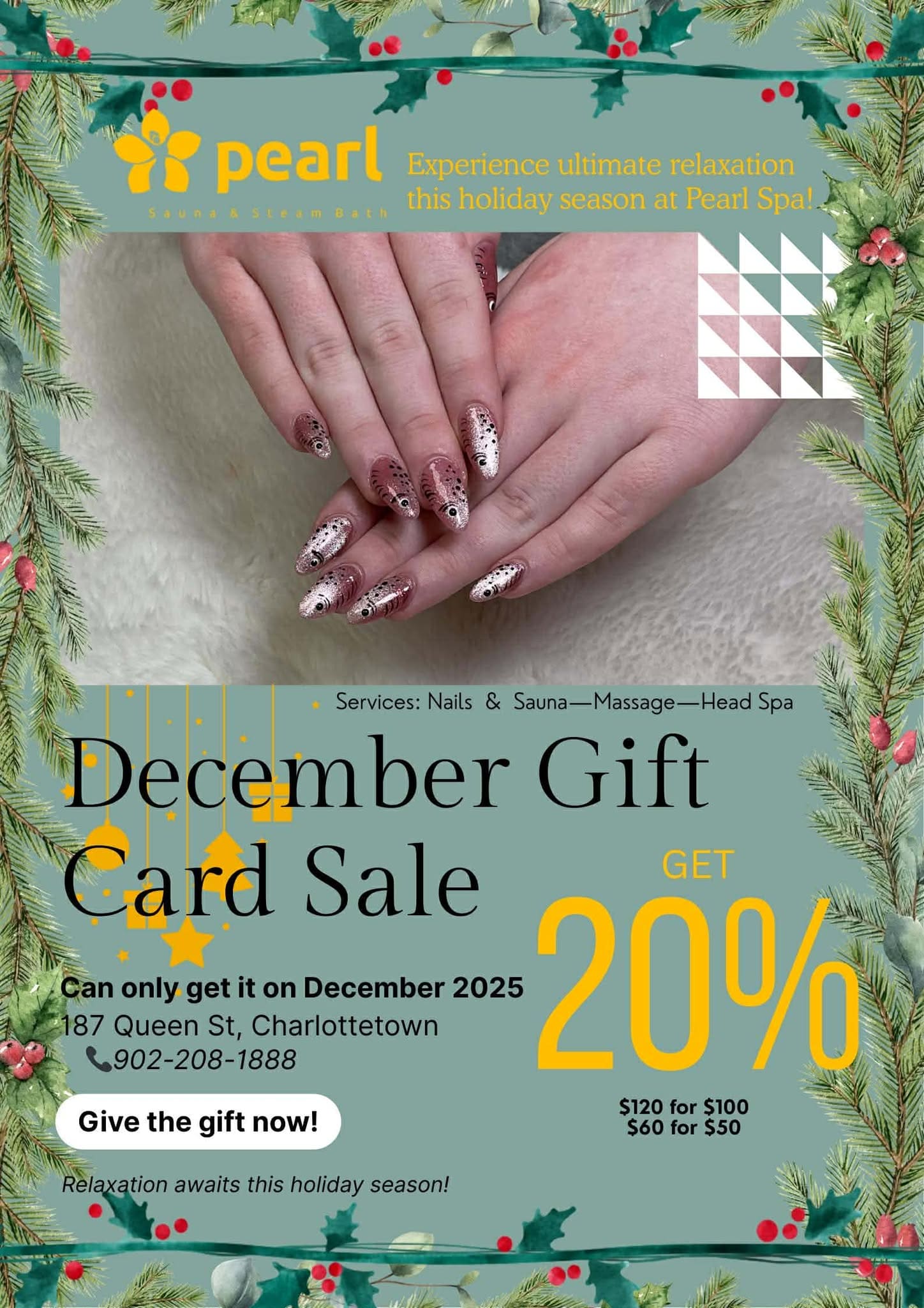 Pearl Nails and Sauna is your all-in-one destination for beauty and wellness in Charlottetown. We offer professional nail care, relaxing float therapy, facials, body massage, and traditional sauna & steambath services. Rooted in our passion for wellness since 2022, we’re dedicated to bringing comfort, health, and happiness to every guest. Discover a peaceful escape and exceptional care—right in the heart of downtown.